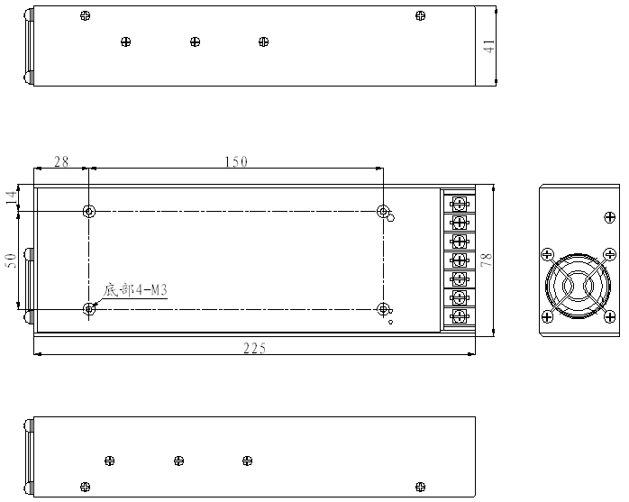 MD系列:重量≤1.0kg;結(jié)構(gòu)尺寸:226mm*78*41(長*寬*高)參見 “350W模塊尺寸-A”; MF系列:重量≤1.2kg;結(jié)構(gòu)尺寸:226mm*108*41(長*寬*高)參見“350W模塊尺寸-B”; MP系列:重量≤1.2kg;結(jié)構(gòu)尺寸:226mm*108*41(長*寬*高)參見“350W模塊尺寸-B”; |